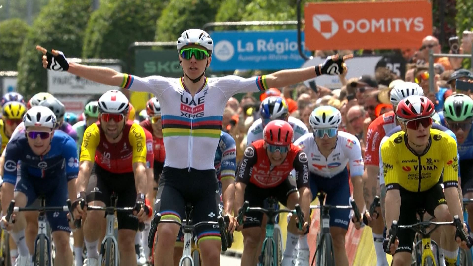 Visma-Lease a Bike taldeko danimarkarrak jo du lehenengo erasoa, baina UAEko esloveniarrak, Van der Poelek, Evenepoelek eta Buitragok harrapatu egin dute, eta bost txirrindulari horiek jokatu dute garaipena; Pogacar izan da azkarrena.