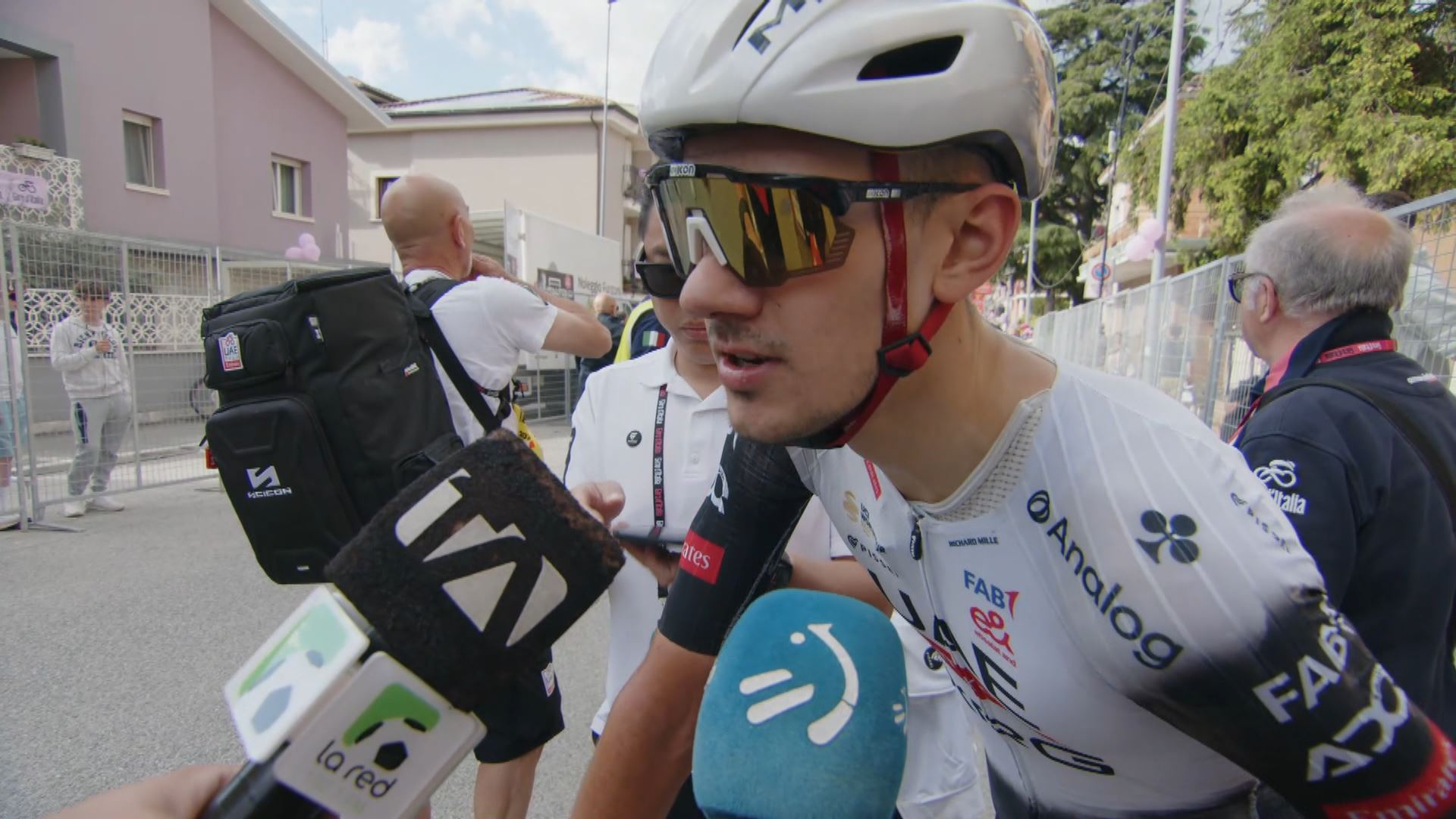 Igor Arrieta UAE taldeko txirrindulari nafarra eguneko ihesaldian sartu da, beste 18 txirrindularekin batera. Dena eman du, eta, azkenean, laugarren tokian helmugaratu da. (Adierazpenak, gazteleraz)