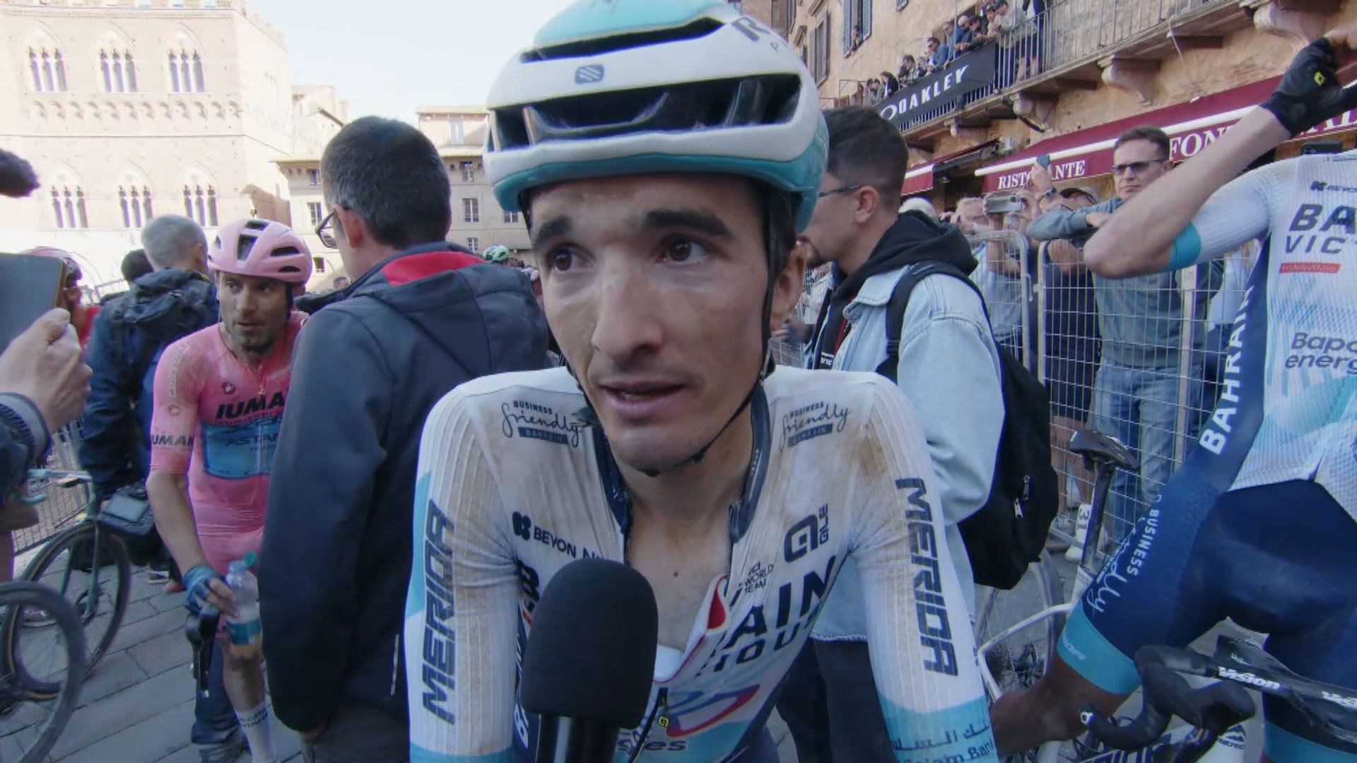 Pello Bilbaok (Bahrain) adierazi du Italiako Giroko 9. etapa "zoroa" izan dela, kilometro asko asfaltorik gabeko errepideetatik egin behar izan dituztelako. Edonola ere, pozik agertu da Antonio Tiberi taldekideak hirugarren tokira egin duelako salto sailkapen nagusian.