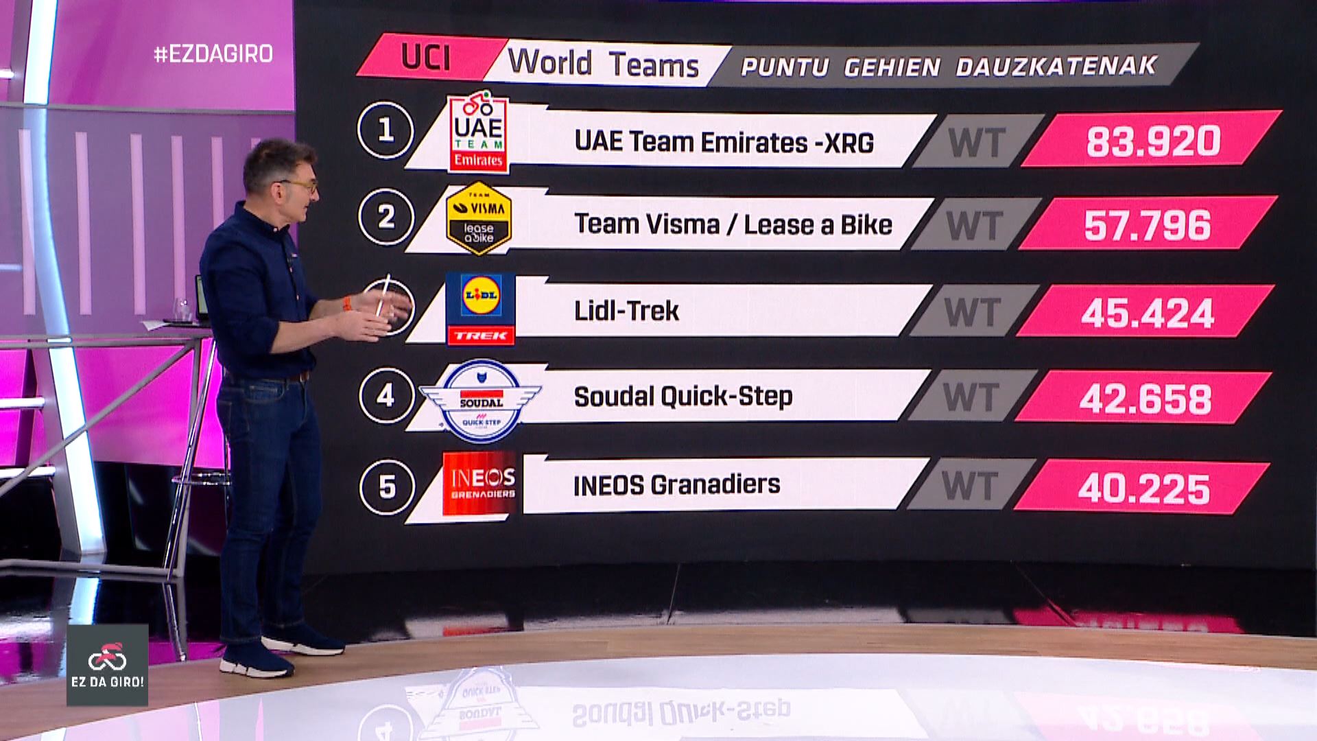 UCIko taldeen sailkapenaren egoeraren berri eman digu Xabier Usabiagak #EzDaGiro saioan. Zein talde dauden UCI World Tourreko buruan, zein maila galtzeko zorian eta zein den euskal taldeen egungo egoera.