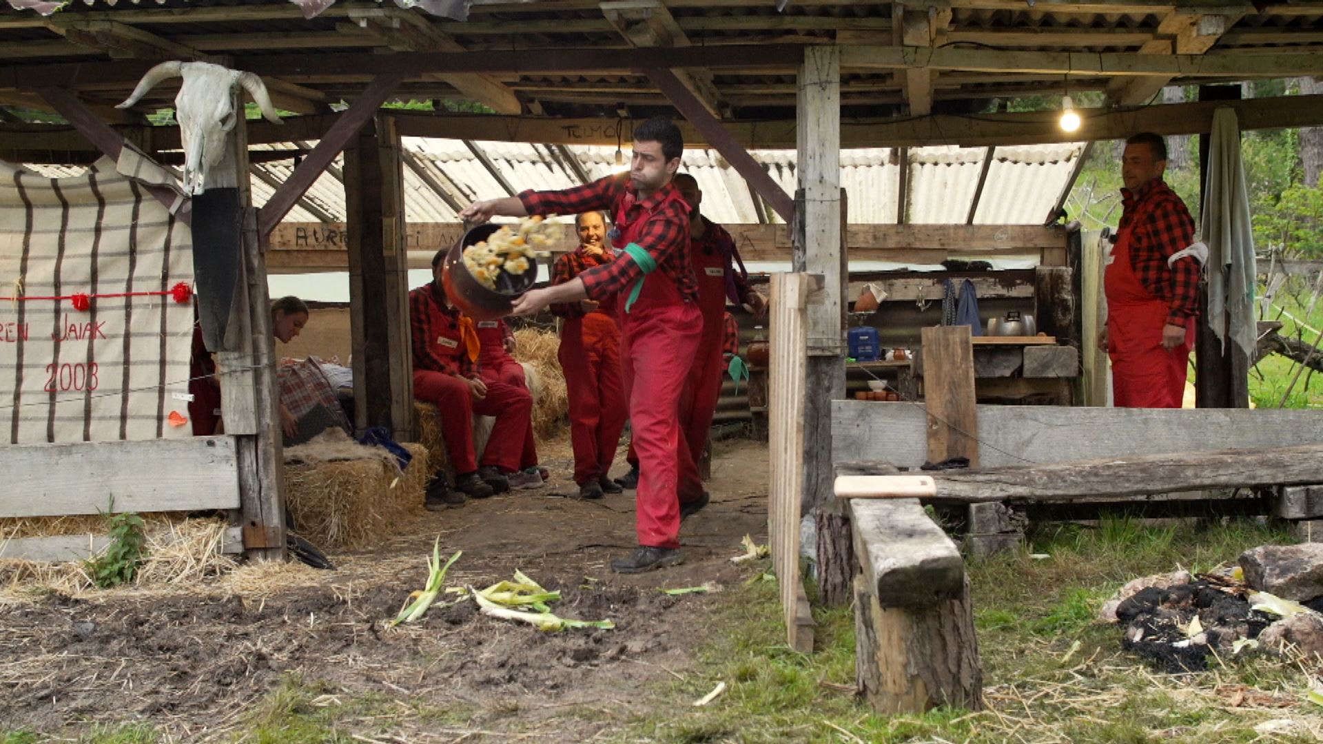 Lehen garaipenarekin, txabola uzteko garaia iritsi zaie talde gorriko kideei, baina baserrira joan aurretik bertan zuten janaria bota dute, ez baitzioten ezer utzi nahi urdinei.