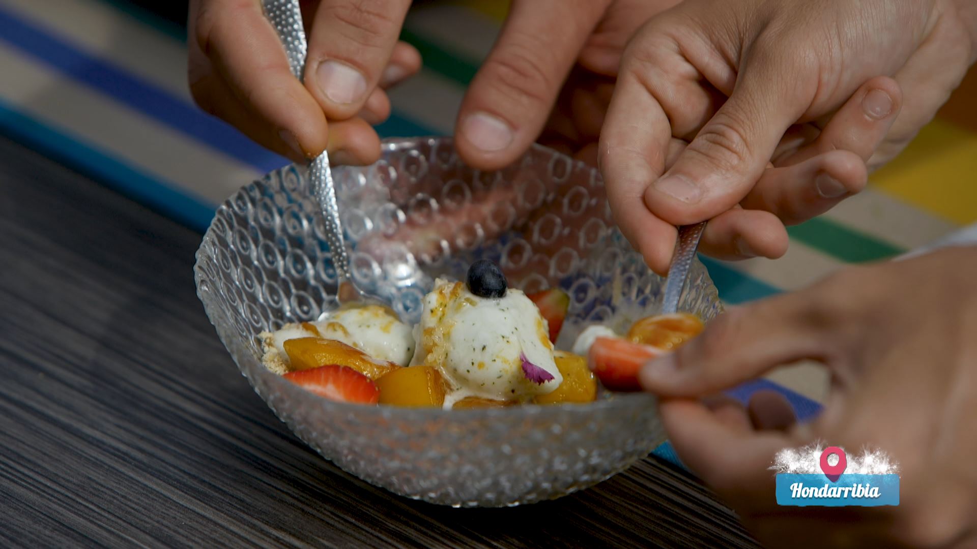 Laranja, limoia, lima, mangoa, jengibrea, karameloa, azukrea eta mojito sorbetea erabilita, azkenburuko aparta bezain orijinala kozinatu du Hondarribiko Tatapas Gastrotekako Adur Arrietak. Eztanda egiten omen du ahoan!
