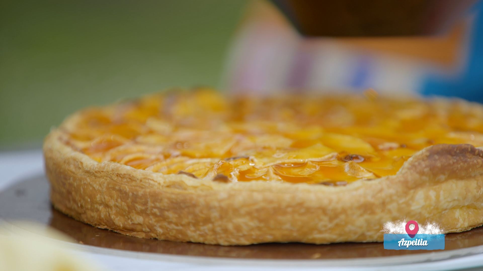 Hostopila, sagar-konpota, sagar-xaflak, pastel-krema eta abrikot marmelada erabili ditu Txintxu gozotegiko Iñigo Odriozolak. Nola egiten duen azaldu digu, pausoz pauso.