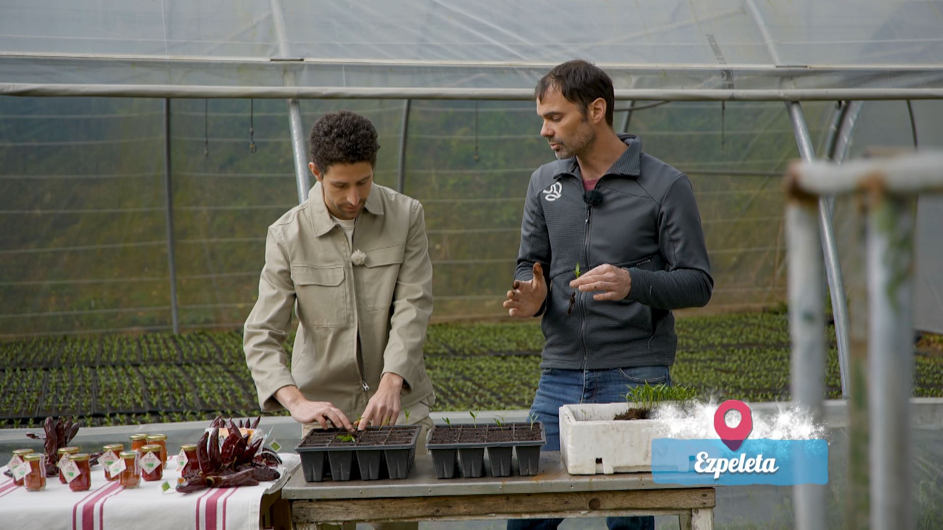 Hiruzpalau tona piper fresko biltzen dituzte urtero Ezpeletako Belazkabieta baserrian. Pampi Olaizolak nola ereiten dituzten erakutsi dio Armintz Gorrotxategiri. Ba al zenekien Ezpeletako piperra gozogintzan ere erabiltzen dutela?