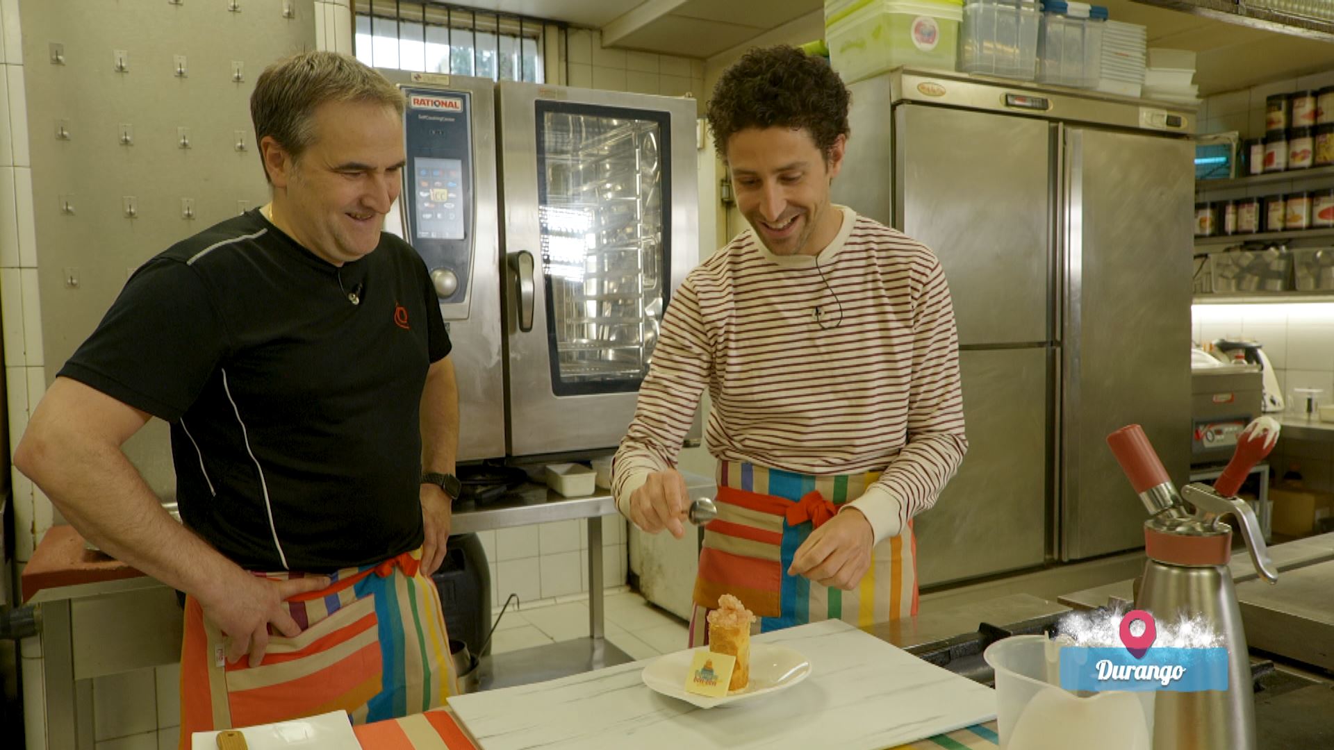 Durangoko Kobika jatetxeko postreetako bat nola kozinatzen duten azaldu dio Iñigo Kortabitartek Armintz Gorrotxategiri: Laranja-erruloa gazta-moussearekin eta patxaran-izotzarekin. Idiazabal gazta eta gazta urdina, esne-krema, patxarana eta laranja erabili ditu, besteak beste.