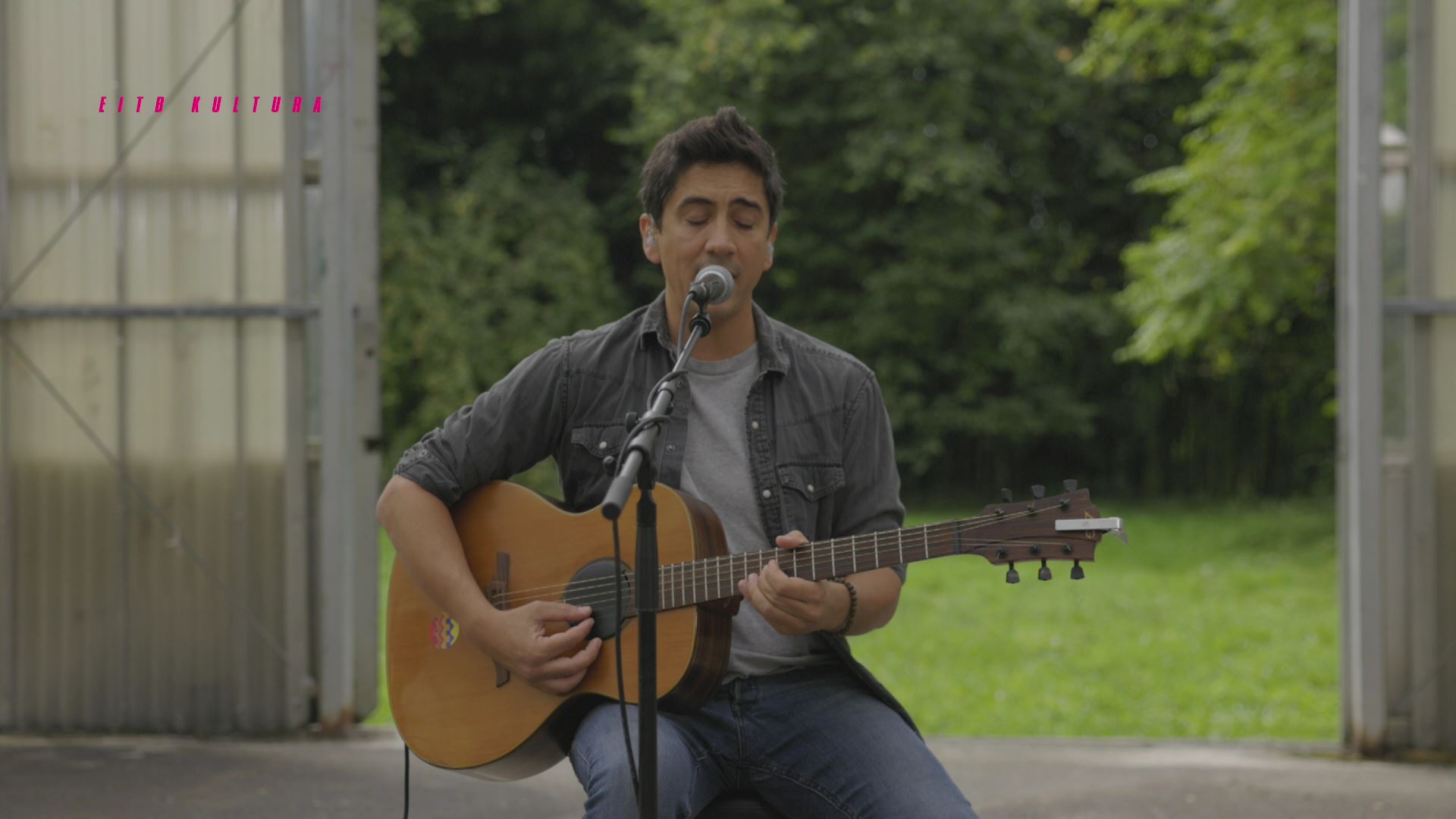 'Kontakizunetik at' kantua abestu eta jo du Donostiako Uliako Mintegien Parkean.
