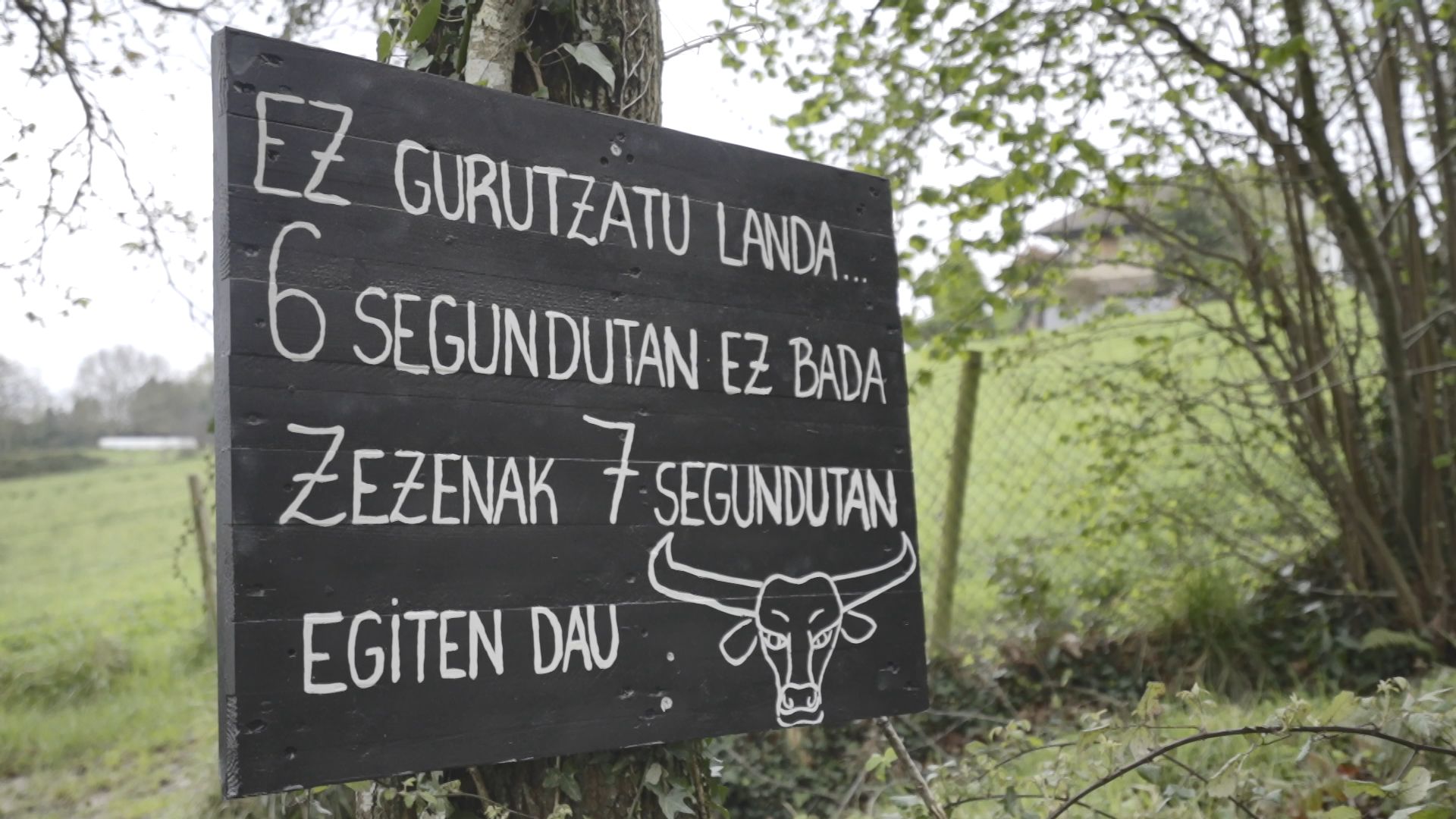 Baserri artean, zezen bat paseatzen topatu du Pagadik Gentza Gallastegi. Bere behi beltzak ondoan ez egon arren, haiek kontrolatzeko duen makina berezi bat erakutsi dio.