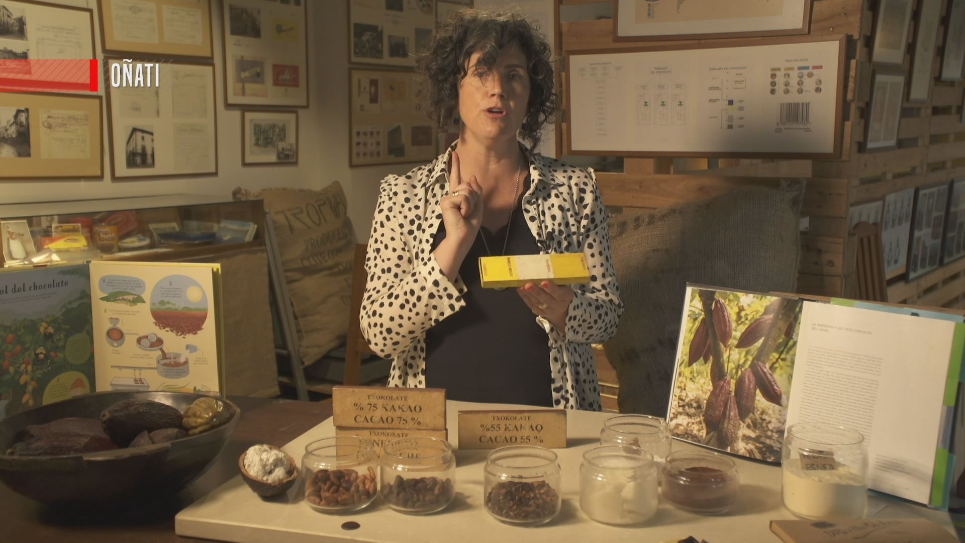 Ba al zenekien kakaoaren fruitua enborrean ateratzen dela? Oñatiko Txokolateixian, txokolatearen interpretazioa zentroan, Amaia Diaz de Monasteriok kakaoaren ezaugarriez eta txokolate mota ezberdinez hitz egin digu.