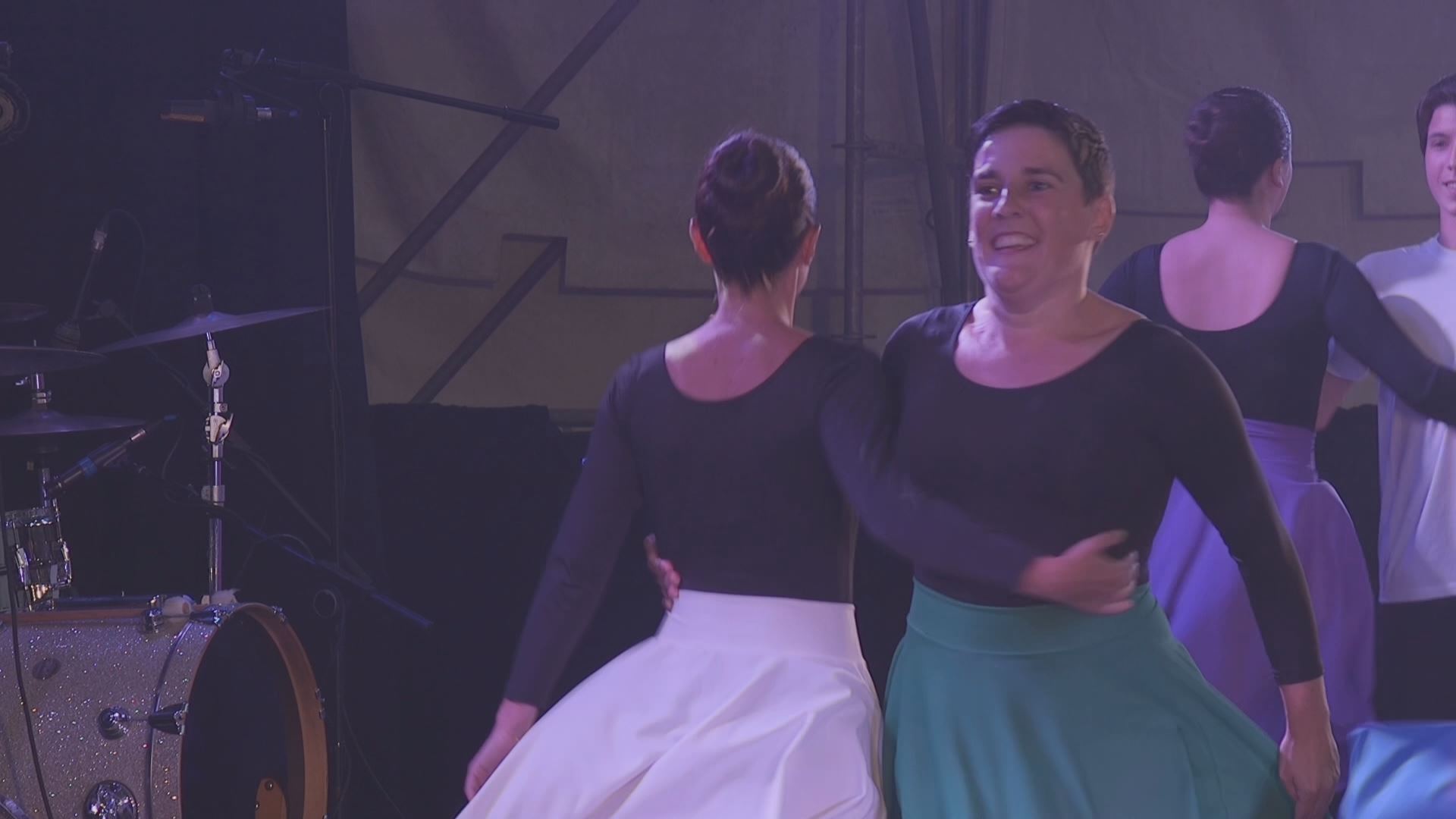 Dantza-taldeko gainerako kideekin batera, eta Izaskun Iturriren gidaritzapean, 'Parfums de musique' abestiari koreografia jarri eta oholtza gainera irten dira.
