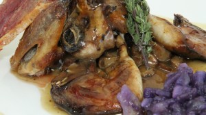 Bakailao trontzoak, panadera patatekin eta piper berdeekin...