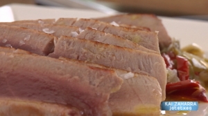 Azkenik, platerean piperrada jarri eta gainean moja atun xerra zatikatua jarri. Gatza eta perrexil pixka bat gehitu.